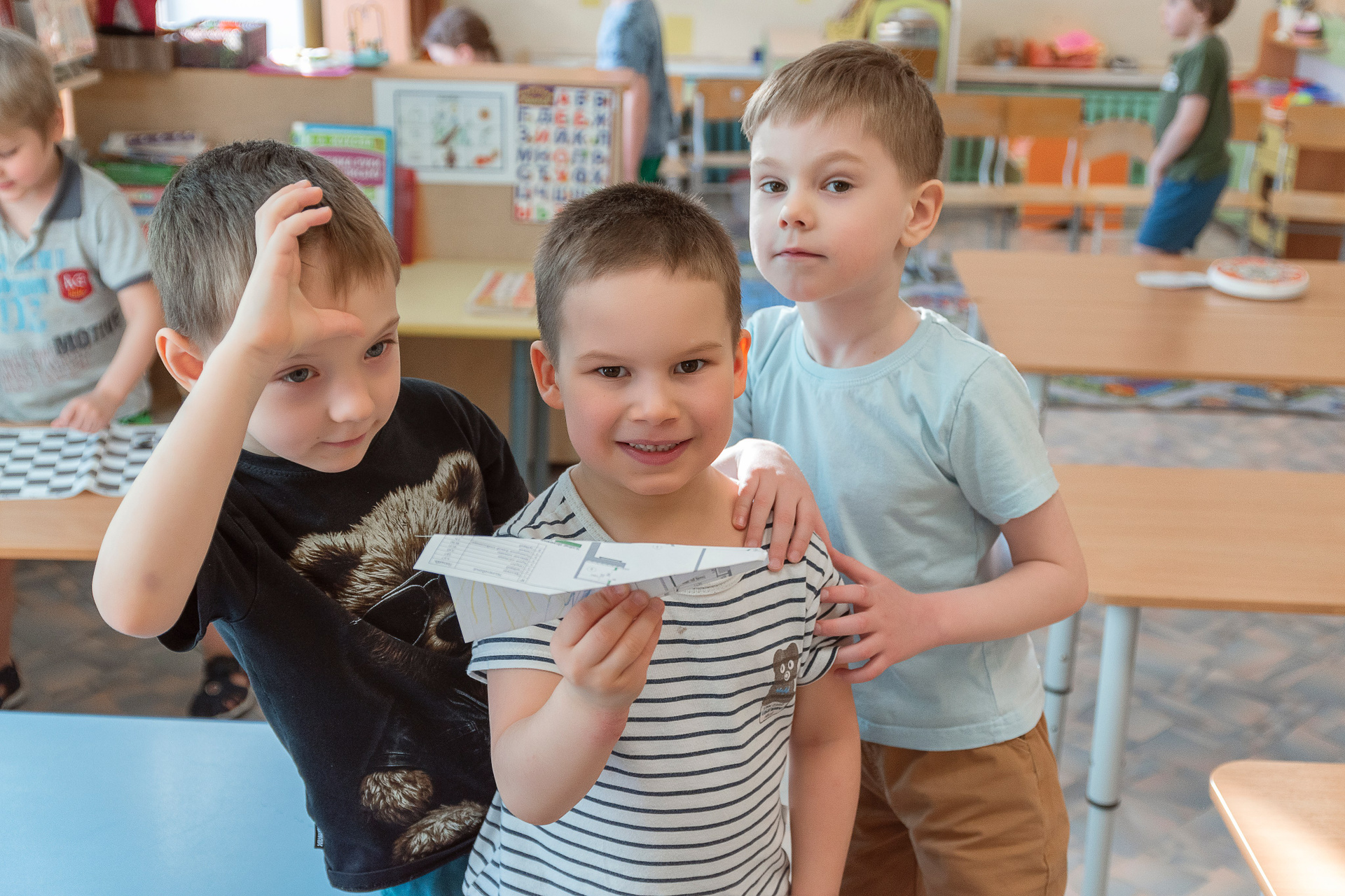 Портретные фото, с друзьями, с воспитателями. На каждой фотографии будет ваш ребенок. Фотографии в альбом выбираете вы сами.